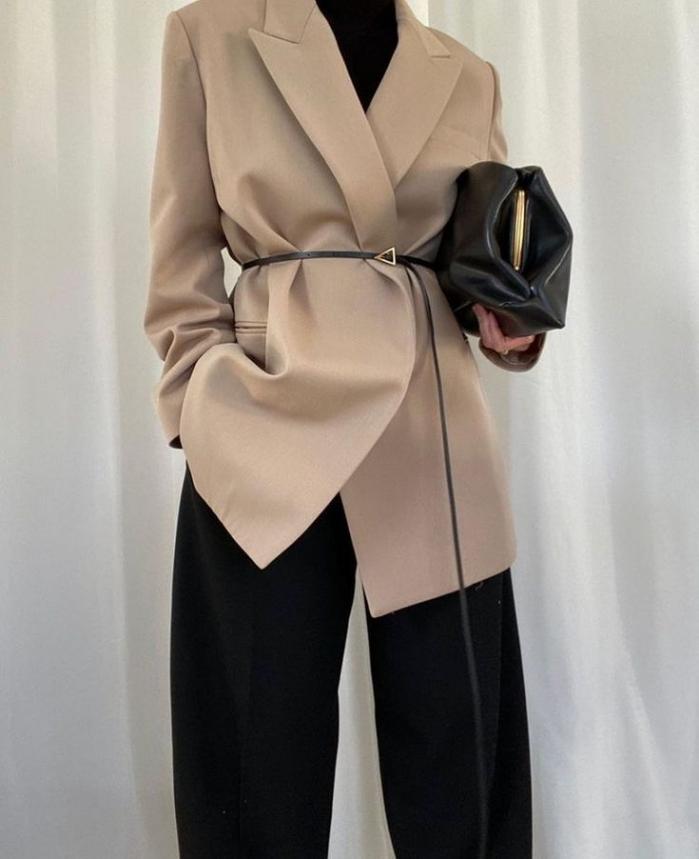 Oversized blazer atau kemeja longgar memang sangat nyaman, tapi terkadang bisa membuat tubuhmu tampak "tenggelam". Solusinya? Slim leather belt. Ikat pinggang kulit tipis adalah fashion hack terbaik untuk mendefinisikan pinggang tanpa merusak estetika santai pakaianmu.