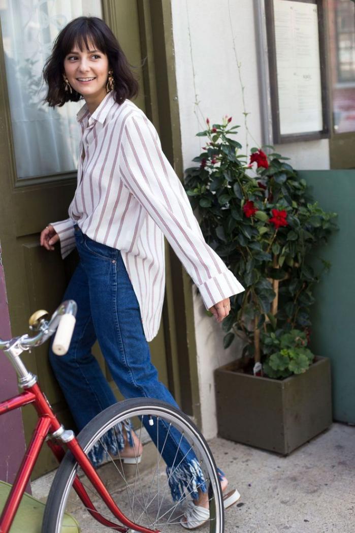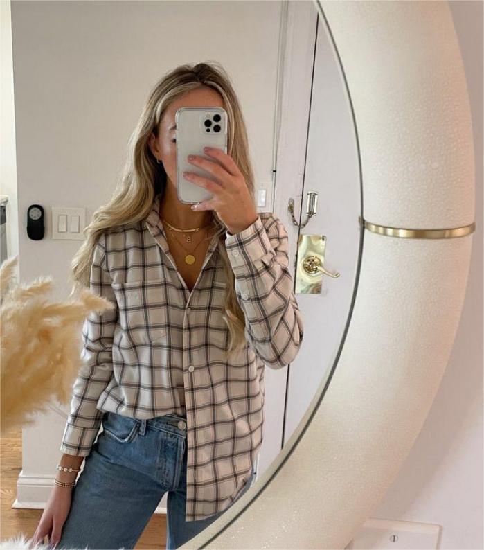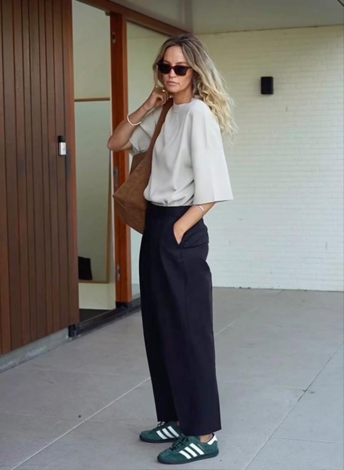 Triknya, gunakan French tuck dengan kancing yang dibuka hingga area dada untuk memberikan kesan effortless. Jika ingin lebih elegan, masukkan kemeja sepenuhnya lalu tarik sedikit kain keluar agar memberikan volume yang lembut di atas pinggang.