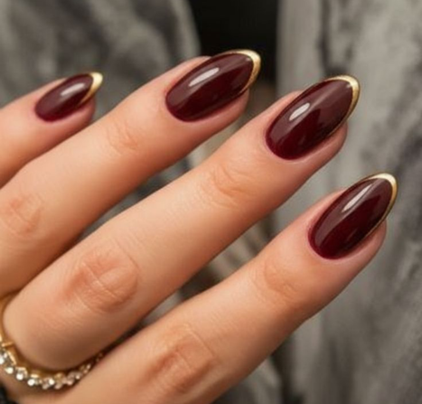 8 Ide Nail Art Maroon and Gold, Mewah dan Klasik