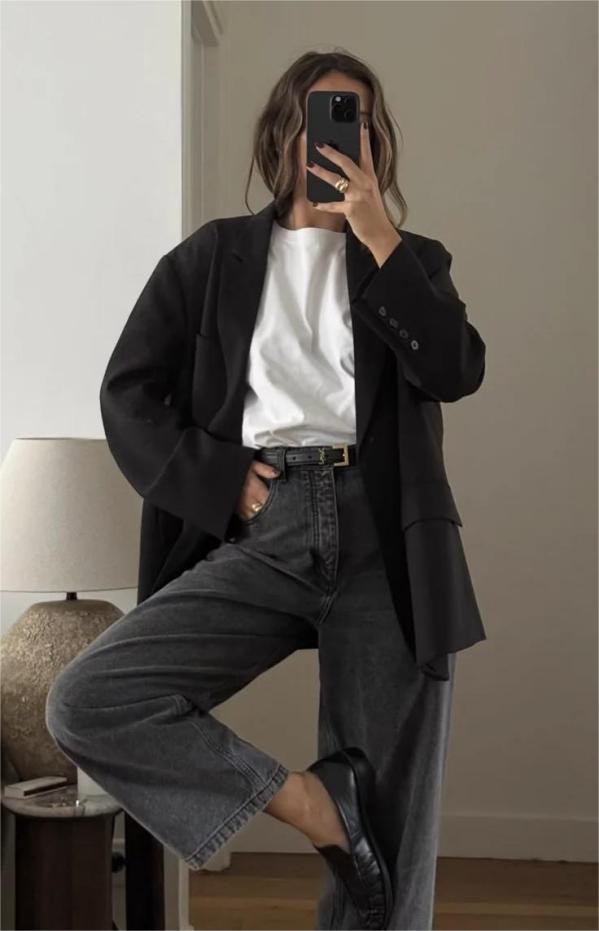 Untuk kamu yang lebih suka gaya edgy tapi tetap rapi, denim abu-abu adalah jembatan yang sempurna. Padukan celana denim abu-abu dengan blazer hitam untuk tampilan semi-formal yang modern.