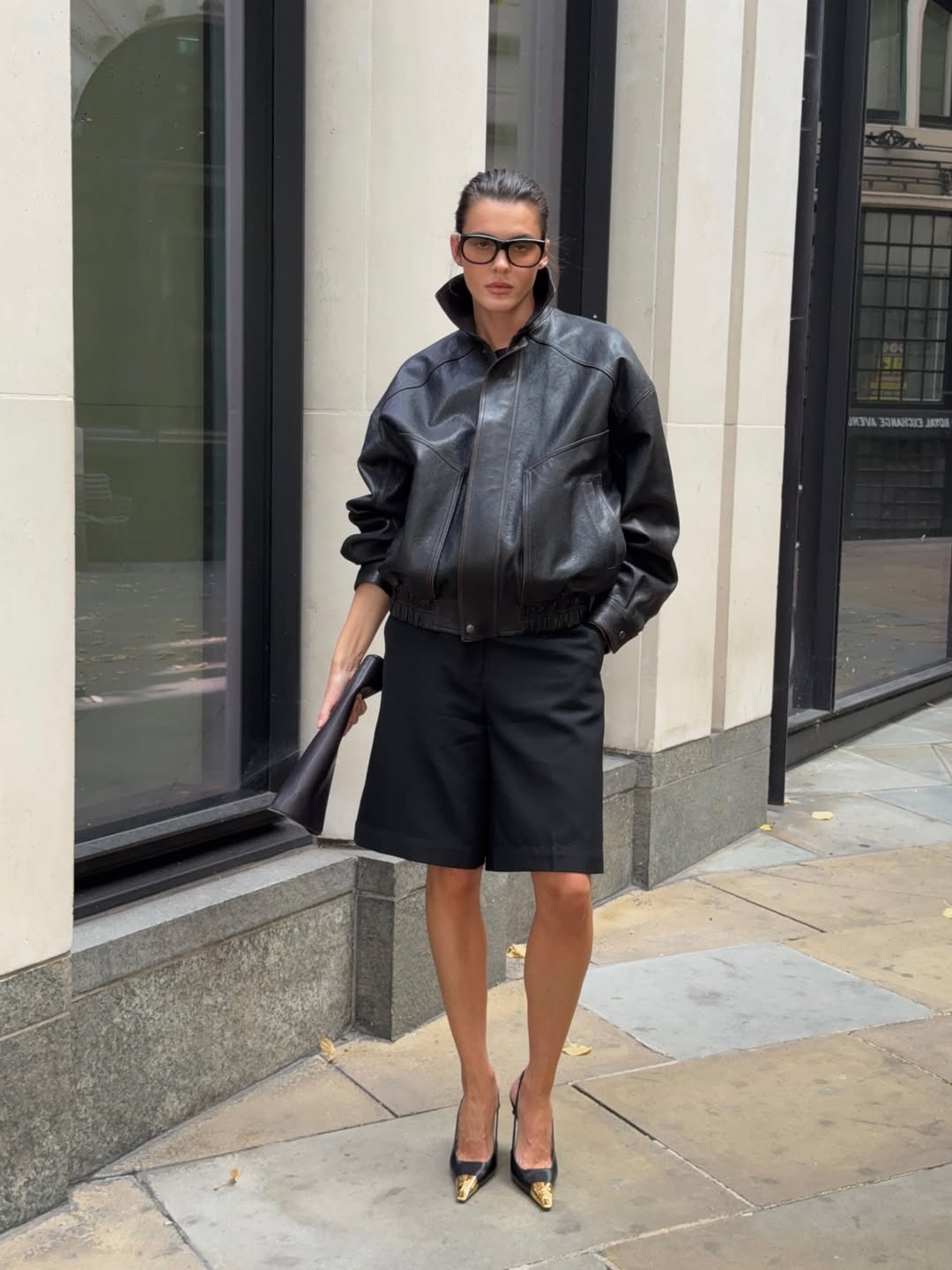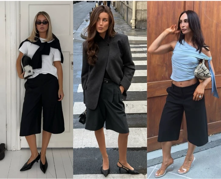 Jaket kulit atau jaket statement apa pun—maupun itu denim jacket dengan embroidery, blazer bermotif, atau jaket berbahan tekstur—akan langsung mentransformasi kulotmu menjadi sesuatu yang terasa jauh lebih bold dan berkepribadian kuat. Biarkan jaket menjadi bintang utama dan biarkan kulot berperan sebagai latar yang sempurna untuk memperlihatkan karakternya. Lengkapi dengan flats atau loafers untuk menjaga keseimbangan antara gaya yang kuat di atas dan kesan yang grounded di bawah.
