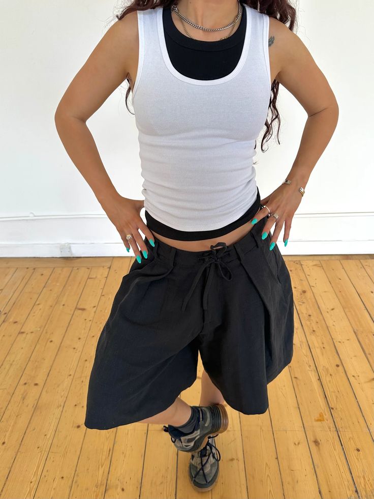 Untuk tampilan yang personalized dan unik, padukan kulotmu dengan dua tank top berbeda warna yang dilapisi satu sama lain — seperti halter tank top di lapisan pertama dan strappy tank top di warna berbeda di lapisan kedua — untuk menciptakan kedalaman visual dan siluet yang unik pada bagian atas tubuhmu. Pilihan kombinasinya tidak terbatas, dan inilah yang membuat teknik layering ini begitu istimewa: tampilan akhirnya sepenuhnya personal dan mencerminkan isi lemari pakaianmu sendiri. Lengkapi tampilan dengan mules untuk kesan yang chic dan modern, atau kitten heels jika kamu menginginkan sedikit tambahan tinggi tanpa harus berdamai dengan ketidaknyamanan heels yang terlalu tinggi.