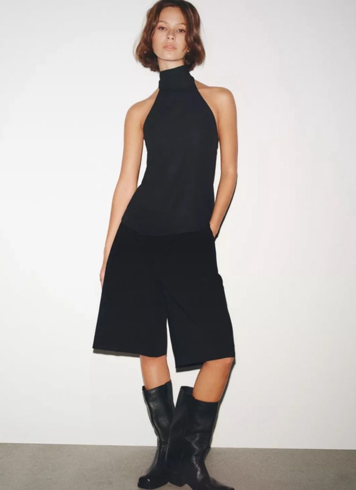 Kombinasi high-neck top dan kulot adalah perpaduan yang lebih cerdas dari yang terlihat di permukaan. High-neck top memberikan kesan yang sleek dan modern di bagian atas, sementara kulot mengimbanginya dengan volume yang anggun di bagian bawah — hasilnya adalah proporsi dan siluet yang begitu harmonis. Untuk tampilan yang feminin dan ringan, sandingkan dengan ballet flats berwarna merah untuk memberikan sentuhan warna yang memukau pada keseluruhan tampilan . Namun, jika suasana hati Cosmo babes sedang ingin sedikit lebih berani dan dramatis, knee-high boots adalah pilihan yang akan langsung mengubah keseluruhan energi outfit-mu menjadi lebih edgy dan berkelas.