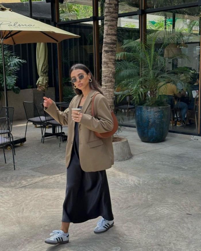 Ingin tampil feminin tapi tetap terlihat kuat? Kamu memadukan blazer dengan gaun untuk memberikan struktur pada pakaian yang biasanya lembut.
