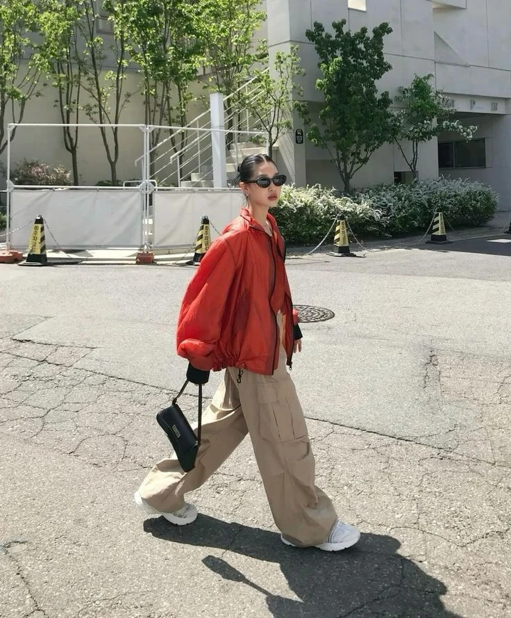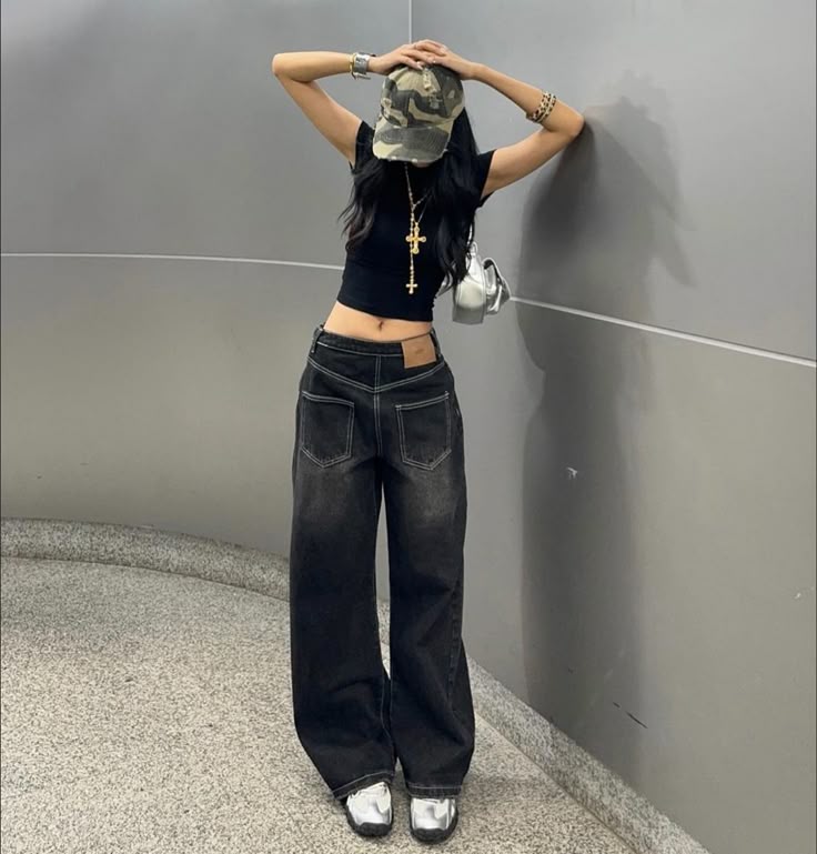 Low-rise baggy jeans yang jatuh tepat di atas sepatu, dipadukan dengan crop top yang memamerkan sedikit bagian perut. Pilih sneaker dengan kombinasi warna yang kontras, seperti neon atau metalik.
