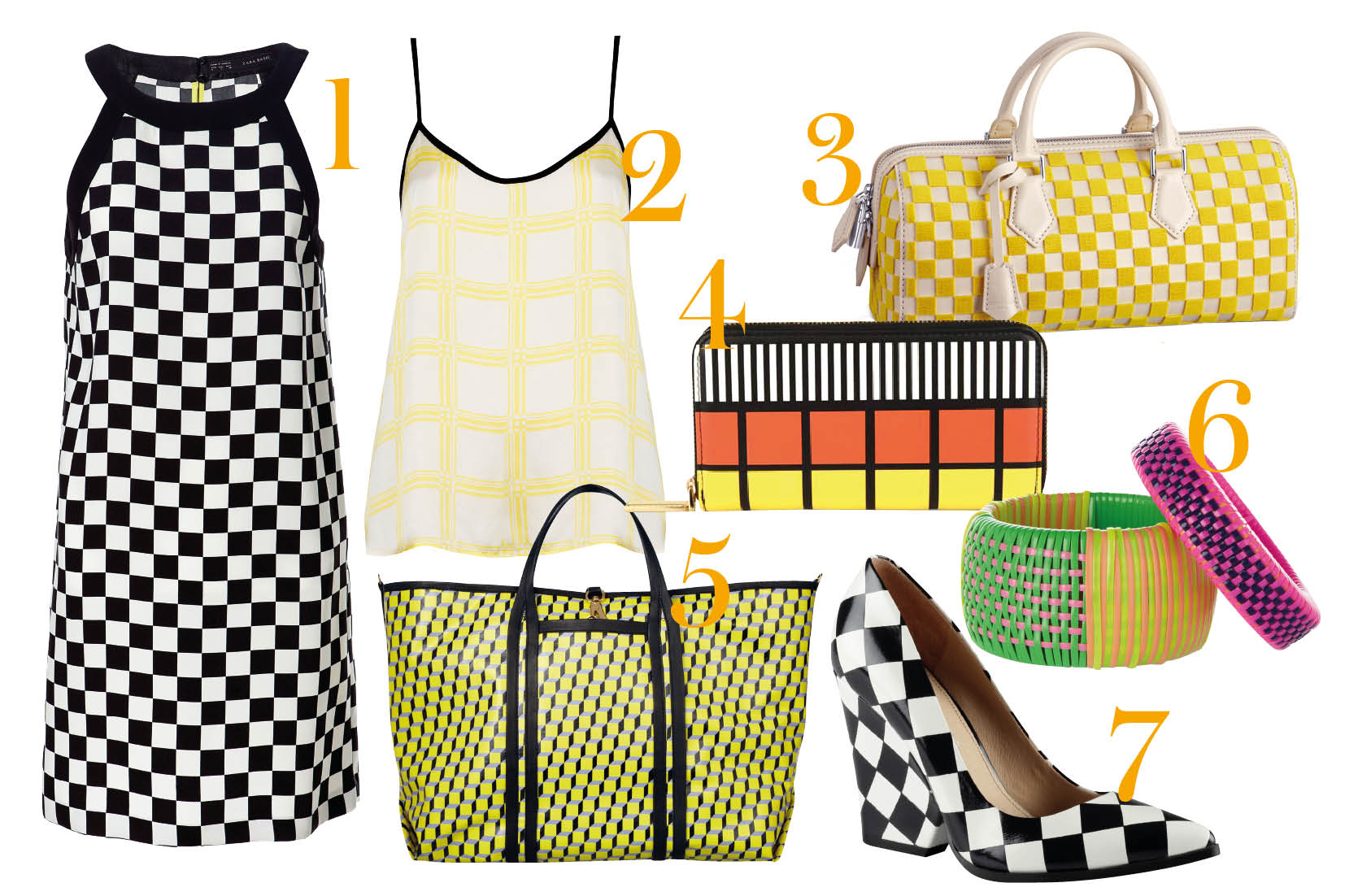 Time to say hello to the new squares. Sekarang motif geometris ini bertransformasi dalam berbagai item dengan warna dan pola seru! Berikut seleksi Cosmo untuk opsi gaya Anda. (Nia / DA / TA / Image: Dok. Cosmopolitan)