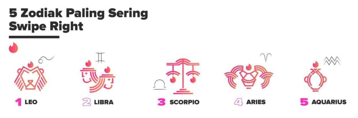 Leo, Libra, Scorpio, Aries, dan Aquarius merupakan zodiak yang paling sering memberikan likes (swipe right).