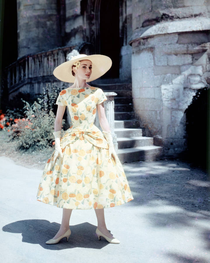 Tak ada yang bisa mengenakan floral print dari ujung kepala hingga ujung kaki sebaik Audrey.