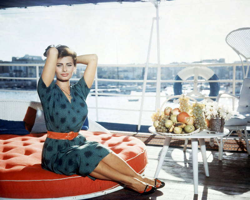 Contoh terbaik untuk gaya musim panas yang glamorous? Sophia Loren's form-fitting sun dress.