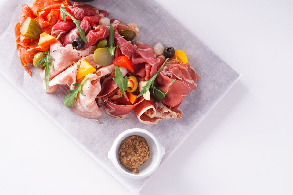 Karena sejak awal restoran ini memang sangat lekat dengan Italia, maka segala bahan pokok makanan diimpor langsung dari negara yang djuluki "sepatu bot" ini. Dengan menyuguhkan pilihan buffet berbagai jenis udang, baby lobster, kepiting bru, dan mignonette. Tak luput juga dari sajia keju khas Eropa, serta salami yang rasanya serupa dengan yang kamu temui di Milan dan Roma, salmon gravlax, vitello tonnato (veal dengan saos tuna) dan panzanella (Tuscan tomato salad).