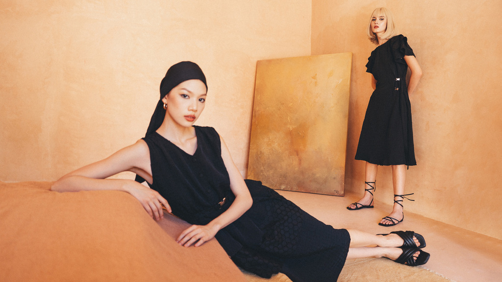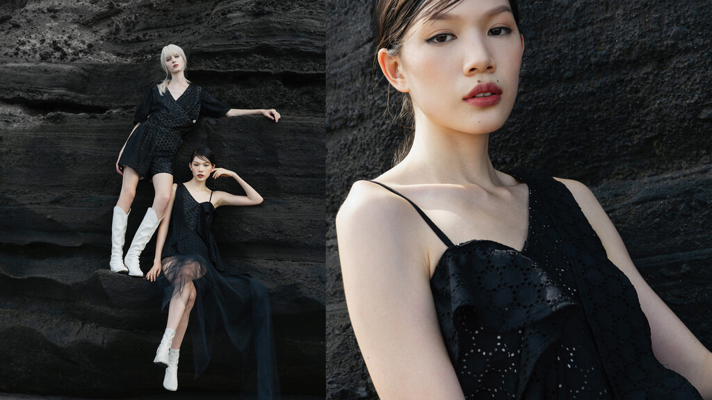 Perpaduan dua elemen kontras, maskulin dan feminin serta klasik dengan modern, diterjemahkan dalam ragam busana hitam dalam nuansa formal dan fierce. Seperti tuxedo dress yang juga dapat dikenakan sebagai luaran, serta ragam dress berpotongan asimetris dengan twist bernuansa feminin seperti aksen ruffles dan tulle.