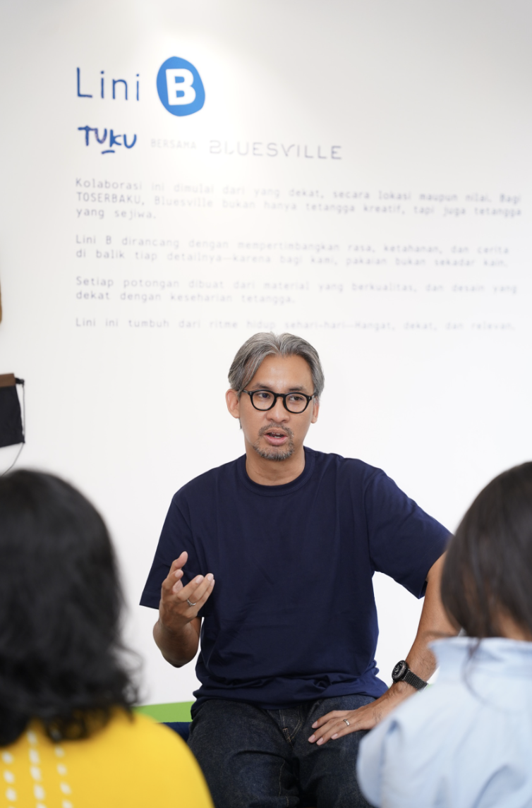 Lebih dari sekadar tren, Lini B mengedepankan konsep keberlanjutan melalui keawetan produk. “Kami percaya pakaian bisa membuat hidup lebih berkualitas. Tapi biar bisa sampai ke lebih banyak orang, kami butuh mitra seperti Toserbaku yang sudah punya koneksi kuat ke komunitas sehari-hari,” ujar Direz Zender, Co-Founder Bluesville.