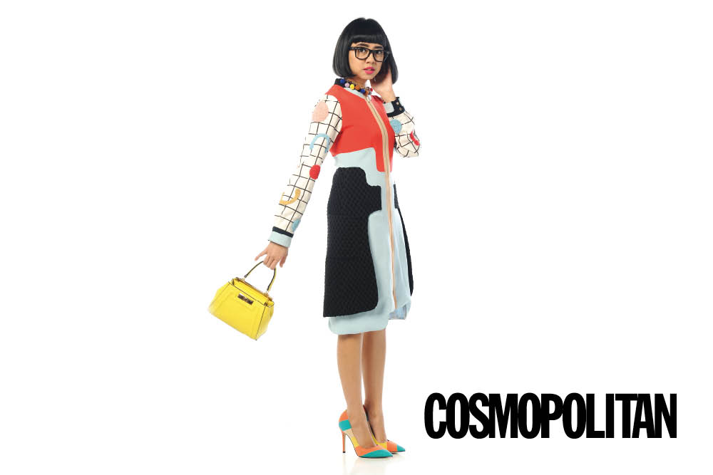 Halo, Cosmo! Gaya ini kan involves a lot of pattern and colors, jadi yang terpenting harus percaya diri dulu dan harus memang nyaman mengenakannya. Jangan tanggung-tanggung dan go bold. Pokoknya, just have fun!