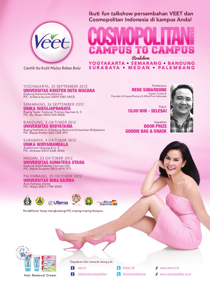Ikuti fun talkshow persembahan VEET dan Cosmopolitan Indonesia di kampus Anda!