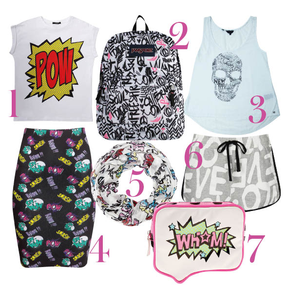 Seni graffiti yang hip di tahun 90an sebagai simbol kebebasan berekspresi, kini menginspirasi dunia mode. Items berikut dihiasi corak berupa tulisan. Sexy and fearless! (Nia Pulungan / DA / Image: Dok. Cosmo)