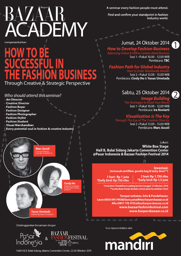 Kesempatan untuk tahu lebih dalam mengenai dunia fashion business dari pakar Internasional seperti
