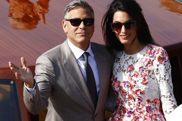 Sebuah hotel mewah, Aman Canal Grande di Venisia dipilih keduanya untuk menjadi tempat acara sakral ini digelar. Untuk sampai ke tempat acara, semua tamu yang menghadiri pesta pernikahan ini harus menggunakan kapal cepat ataupun gondola. Dari kalangan selebriti terlihat Matt Damon yang datang bersama istri, Anna Wintour, dan Emily Blunt. Selama acara, para tamu dihibur oleh string orchestra sambil menyantap menu utama dari Chef asal Italia, Riccardo De Pra dan canapes yang dipersembahkan oleh Chef Frederico Salza