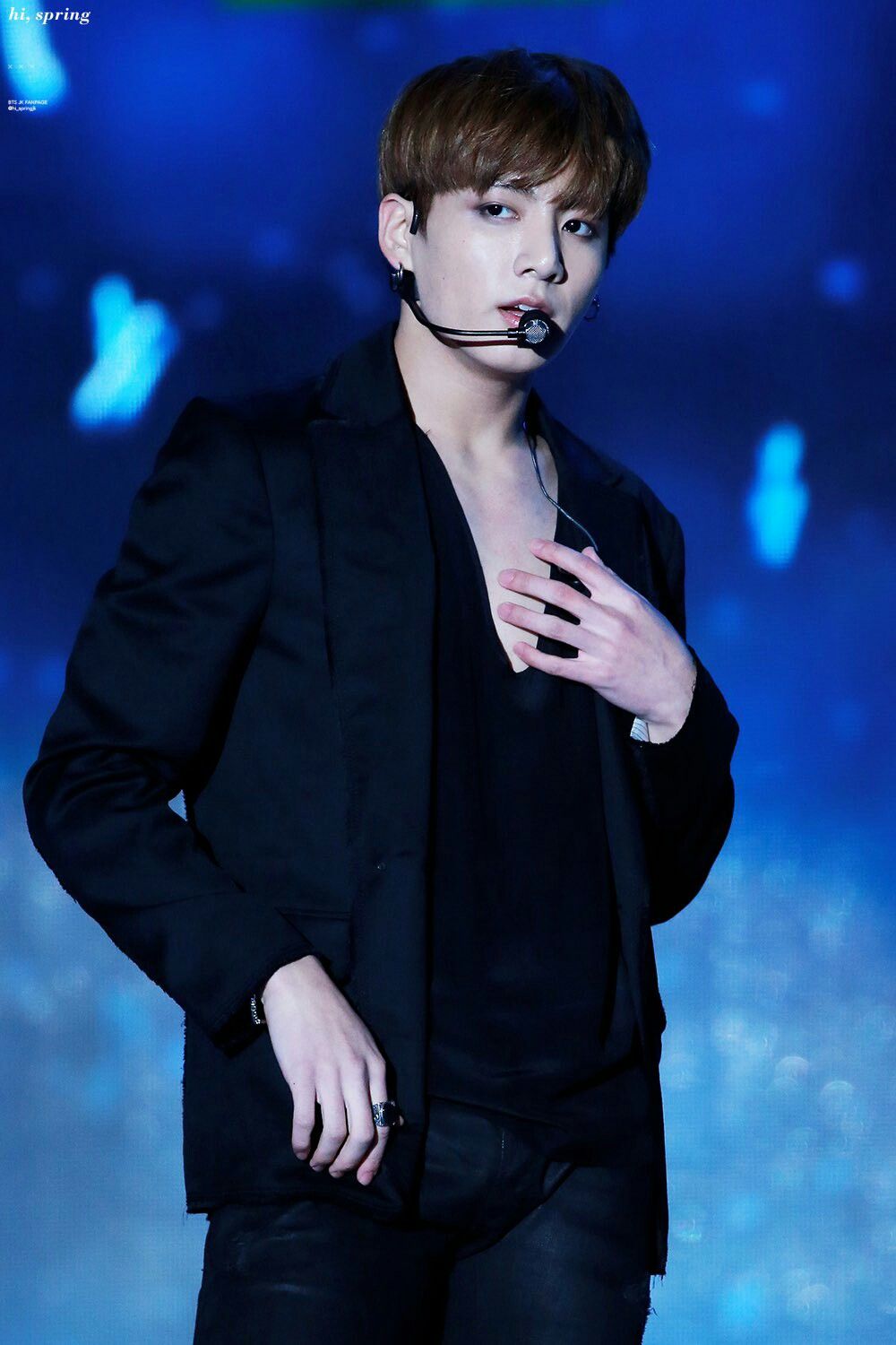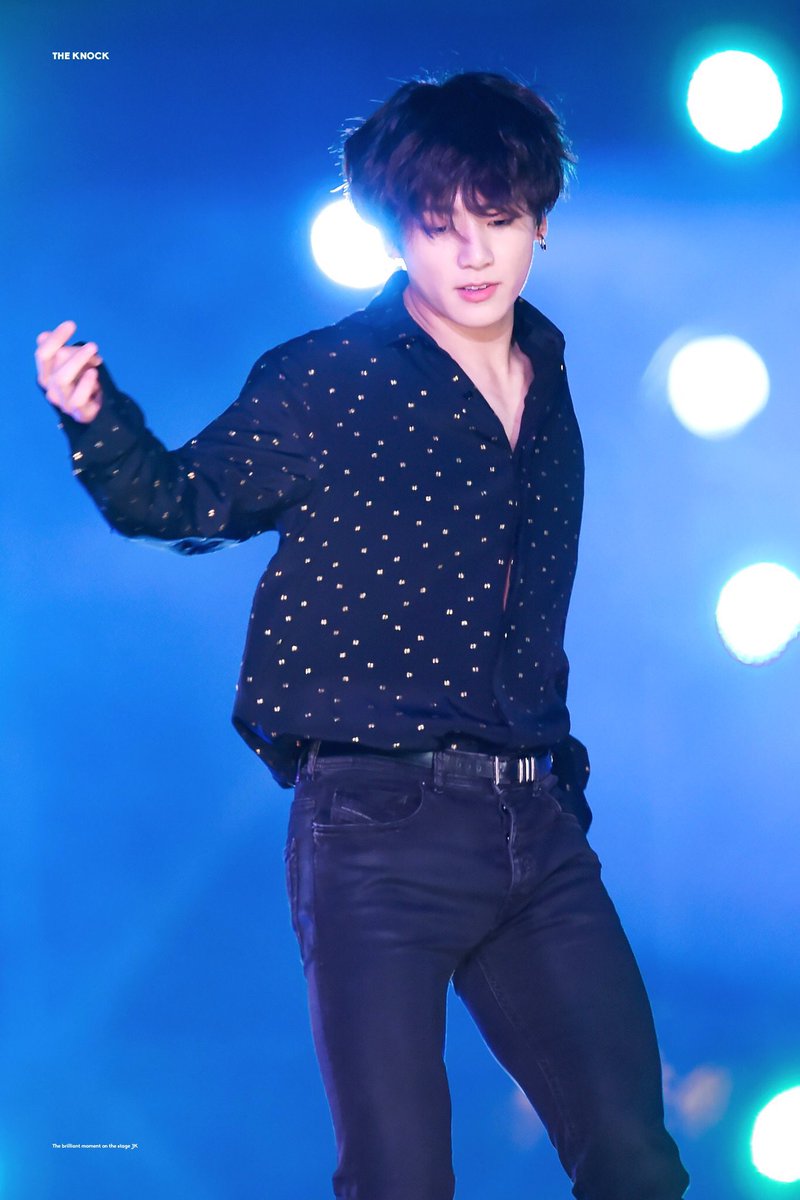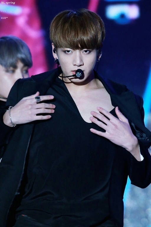 2016 bisa dibilang menjadi salah satu tahun "terpanas" bagi BTS dan ARMY, terlebih sejak mereka merilis lagu Blood Sweat & Tears yang berirama catchy dan seksi. Di era ini BTS seringkali tampil dengan outfit yang seduktif dan tight, tak terkecuali outfit untuk Jungkook BTS. Salah satu yang paling memorable adalah outfit hitam yang digunakan Jungkook dalam ajang KBS1 Open Concert di bulan Oktober 2016. Di sini ini Jungkook menggunakan blazer hitam dengan celana hitam ketat yang menonjolkan keseksiannya. Yang membuat outfit ini terasa begitu spesial tentu saja inner berbentuk V-neck line yang memperlihatkan area dada dari personil termuda BTS tersebut. We need a holly water!
