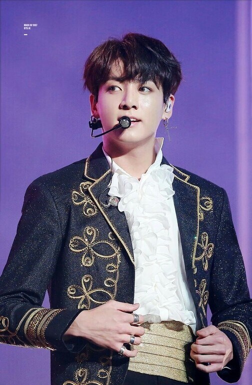 Kalau kamu pernah membayangkan Jungkook BTS dengan suit ala pangeran muda kerajaan, congratulations sebab kamu bisa mewujudkan fantasi tersebut dalam rangkaian foto-foto dan outfit Jungkook BTS saat menghadiri Golden Disk Award di tahun 2017 ini. Di rangkaian tur dunia BTS Love Yourself, Jungkook juga kembali dengan tampilan ala royal prince berwarna hitam emas yang tak kalah classy!