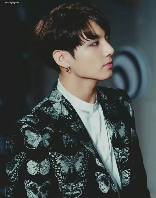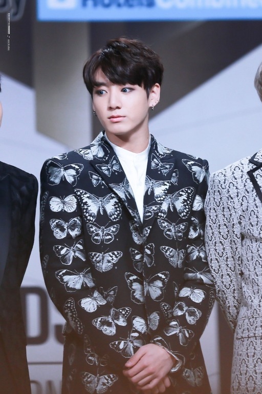 Kreativitas para stylist BTS juga membawa Jungkook BTS pada setelan jas bermotif kupu-kupu yang elegan dan terlihat begitu fancy. Untuk look ini Jungkook juga memadankannya dengan sebuah kemeja putih dan celana hitam. Ini merupakan salah satu outfit Jungkook BTS yang sulit untuk dilupakan hingga hari ini.