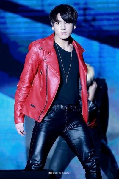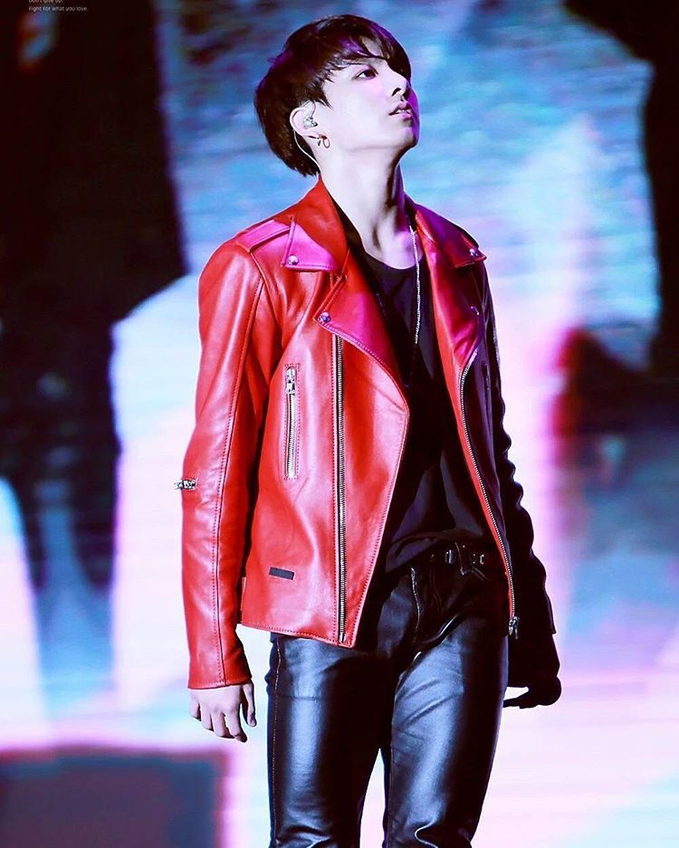 Gelar outfit Jungkook BTS terbaik dan terseksi berikutnya jatuh kepada leather jacket berwarna merah ini! Warna merah bisa terbilang cukup jarang digunakan oleh pelantun Euphoria sebagai bagian dari outfit perfomance-nya. Tetapi saat ia menggunakan warna merah, kita tahu bahwa warna tersebut tak pernah gagal dalam memancarkan aura seksi seorang Jungkook BTS. Fireeee!
