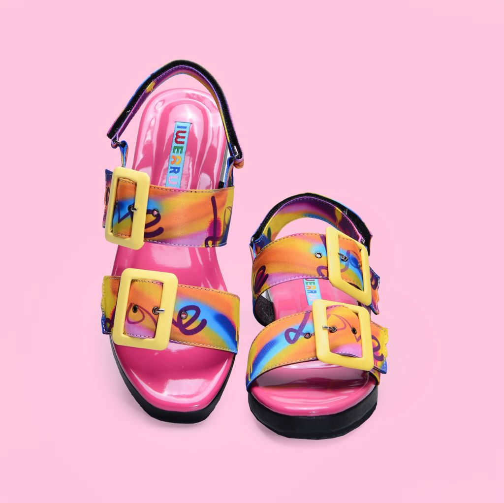 Sosok desainer Diana Rikasari identik dengan gaya playful penuh warna. Hal tersebut juga tertuang dalam kreasi label pribadinya yakni IWEARUP. Sebuah sandal bergaya sporty seketika terlihat lebih quirky dalam kombinasi warna vibran dan corak artsy. Di situs resmi IWEARUP sandal ini dijual Rp485.000.
