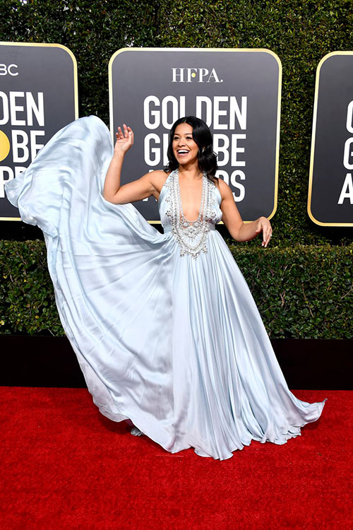 Lady Gaga sukses menjadi perbincangan berkat gaun icy blue rancangan Maison Valentino yang senada dengan rambutnya.Tidak kalau memukau, Gemma Chan dari film 'Crazy Rich Asian' jadi favorit Cosmo. Simak bagaimana kemeriahan red carpet Golden Globes 2019 berikut ini.