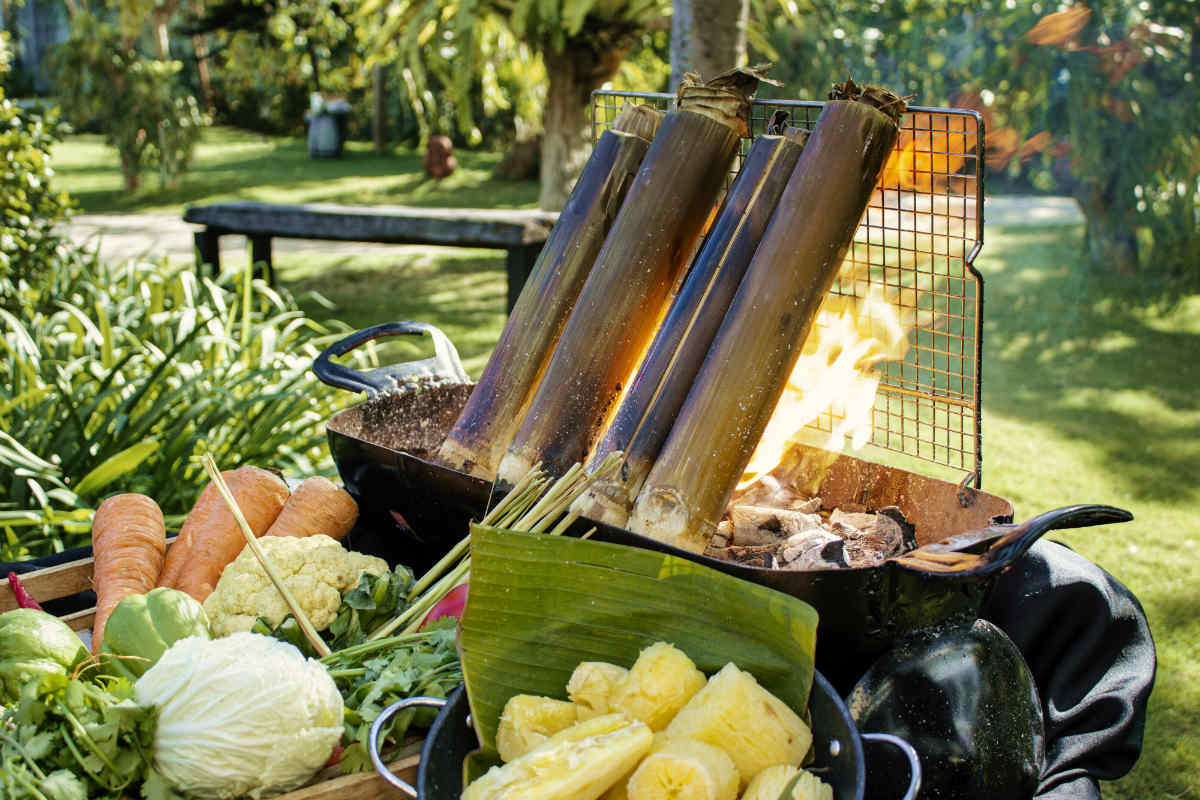 Perkenalkan, hidangan tradisional dari suku Minahasa di Manado, Sulawesi Utara. Hidangan yang hanya dimasak untuk acara atau upacara spesial bagi suku Minahasa ini bisa dicicipi di sini! Chef Gledy pun menyajikan hidangan otentik ini dengan alternatif bambu hingga menambah cita rasa pada daging ayamnya. Yum!