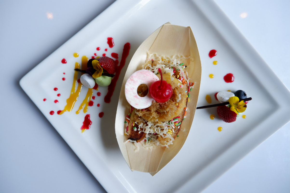 Menikmati jajanan khas kaki lima es buah yang dingin dan manis di Pulau tropis Dewata adalah match made in heaven! Chef Candra Saputra menghidangkan dessert segar khas Indonesia ini dengan ragam potongan buah, sirup, susu kental manis, dan disuguhkan dengan topping favorit para lokal Bali. Fresh!
