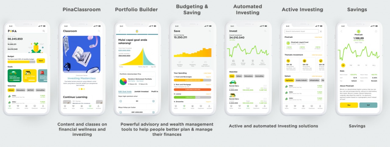Tanpa ribet hanya dengan satu aplikasi, PINA, akan membantu kamu dengan berbagai fitur yang dapat mempermudah kamu mengelola keuangan kamu mulai dari pemasukan, pengeluaran, edukasi finansial, hingga investasi. Kamu diharapkan akan merasa seperti memiliki personal assistant atau one stop information and investment tools dengan menggunakan aplikasi PINA karena fitur yang lengkap untuk memberikan saran atau informasi dan bantuan kapanpun di manapun.
