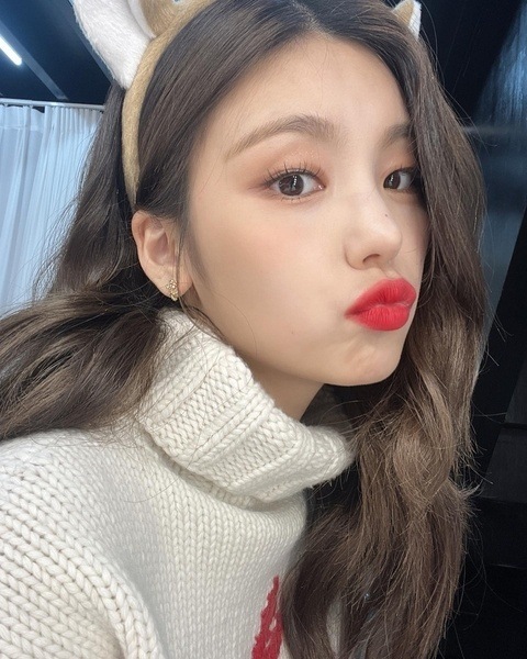 Ide makeup Imlek pertama datang dari Yeji ITZY. Leader ITZY tersebut tampil segar dengan lipstik merahnya. Makeup Imlek satu ini dijamin cocok bagi kamu yang baru saja mulai belajar makeup. Yang kamu perlukan adalah menggunakan base makeup favoritmu, alis yang rapi, eyeshadow berwarna netral, dan maskara.