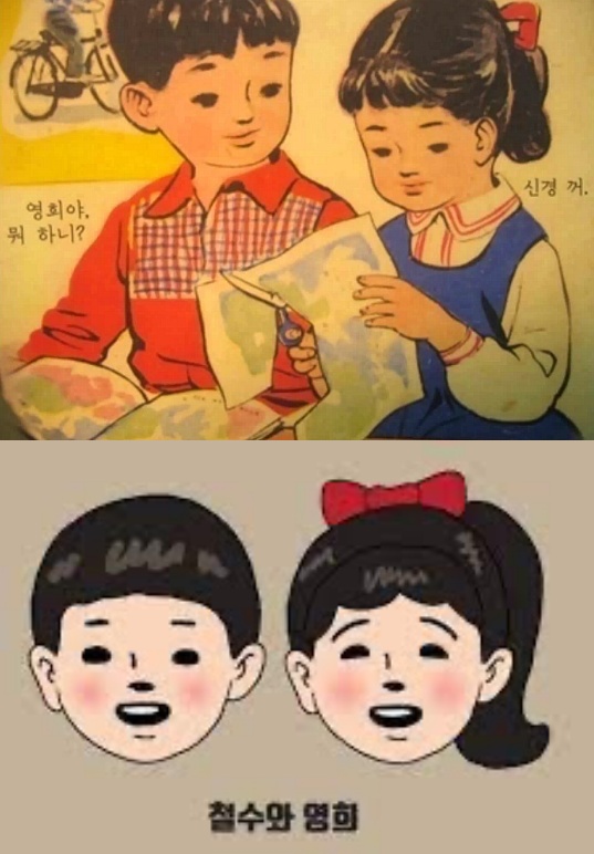 Keduanya ternyata merupakan karakter yang sering berada di buku teks lama Korea pada era tahun 1970-1980. Dalam beberapa penggambaran buku Korea tersebut, Young-hee muncul dengan dress berwarna merah yang menggemaskan. Sedangkan Chul-su memakai pakaian berwarna biru dengan topi.