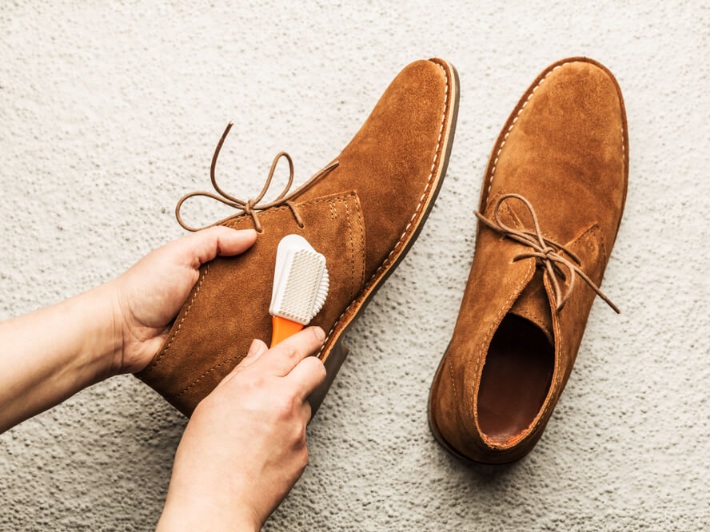 Musuh utama suede di musim hujan adalah jamur yang muncul akibat sisa kelembapan. Untuk mencegahnya, kamu butuh ritual menyikat yang benar. Gunakan suede brush yang memiliki bulu lembut dan sisi karet.