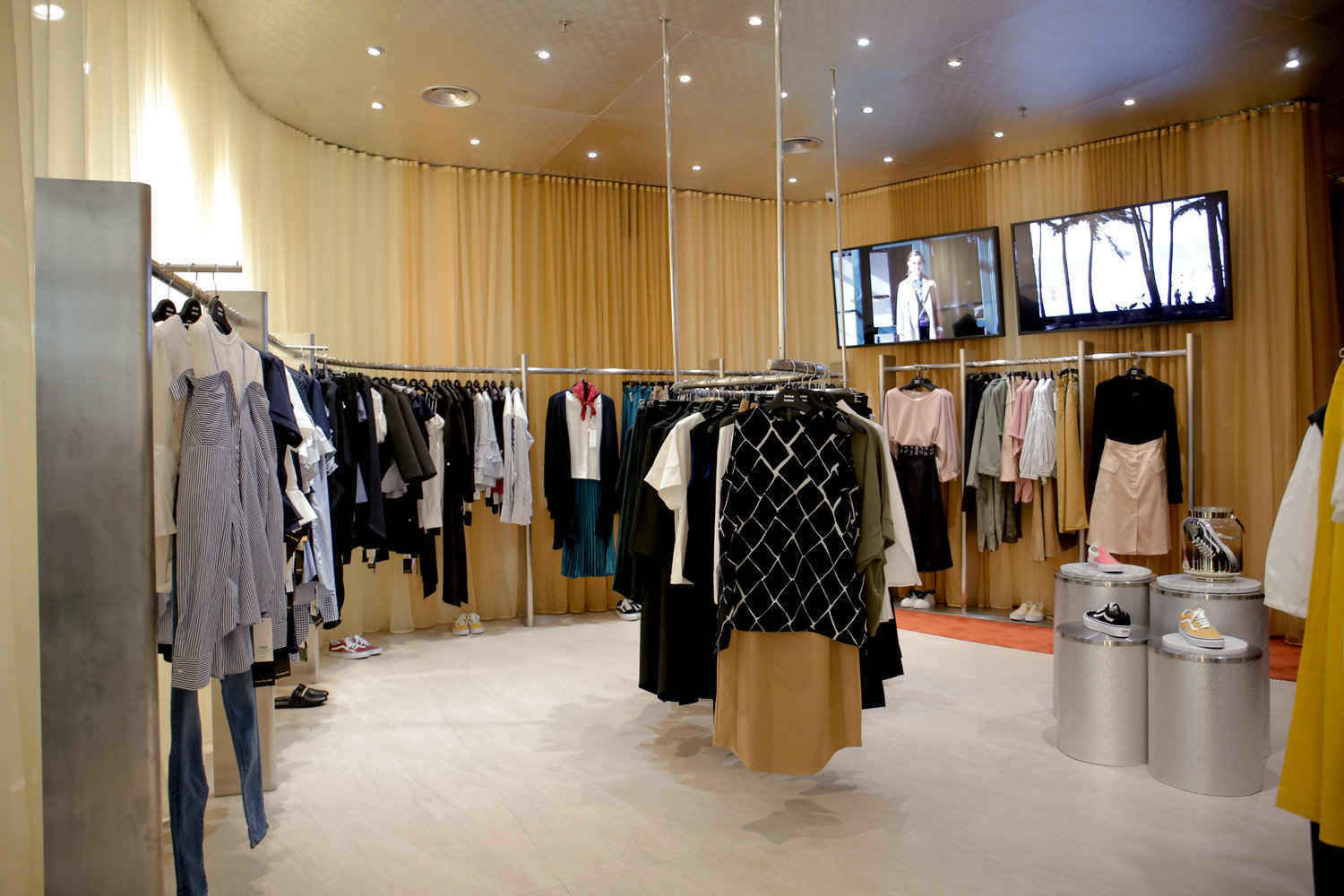 Ketika memasuki toko yang terletak di lantai satu ini, atmosfer yang timbul akan membuat kamu merasa berada di lemari pakaian pribadi dengan latar belakang seluruh toko ditutupi tirai emas yang transparan. Warna serupa juga terlihat menghiasi langit-langit dan lantai dengan sentuhan karpet oranye. Bagaimana ladies, membayangkan suasana seperti itu sudah bisa menciptakan pengalaman berbelanja yang menyenangkan, hangat, dan intim belum?