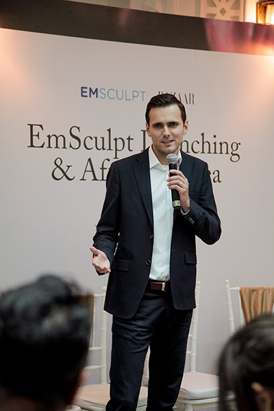 Setelah itu, acara dilanjutkan dengan presentasi EmScalpt oleh Pavel Mykylyn, Head of Clinical Operations. EmSculpt menggunakan energi HIFEM® (High-Intensity Focused Electromagnetic) untuk menciptakan kontraksi otot supramaksimal yang menyebabkan pembentukan otot dan pembakaran lemak. EmSculpt juga telah FDA-cleared untuk meningkatkan dan menguatkan otot perut sehingga menghasilkan tingkatan selanjutnya, yaitu abs contouring results. Menstimulasi kontraksi supramaksimal otot yang tidak bisa didapatkan dengan olahraga biasa.