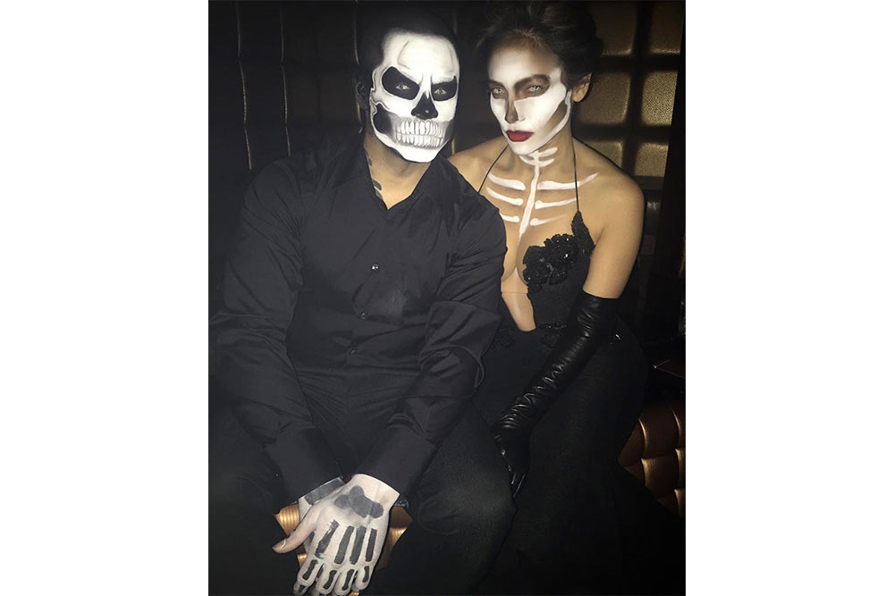 Dandanan ala tengkorak tidak selamanya terlihat membosankan, lihat tampilan Jennifer Lopez dan Casper Smart yang bergaya dengan art makeup tengkorak namun terlihat modis lewat gaun hitam yang indah juga suit and tie yang maskulin. They deserved it!