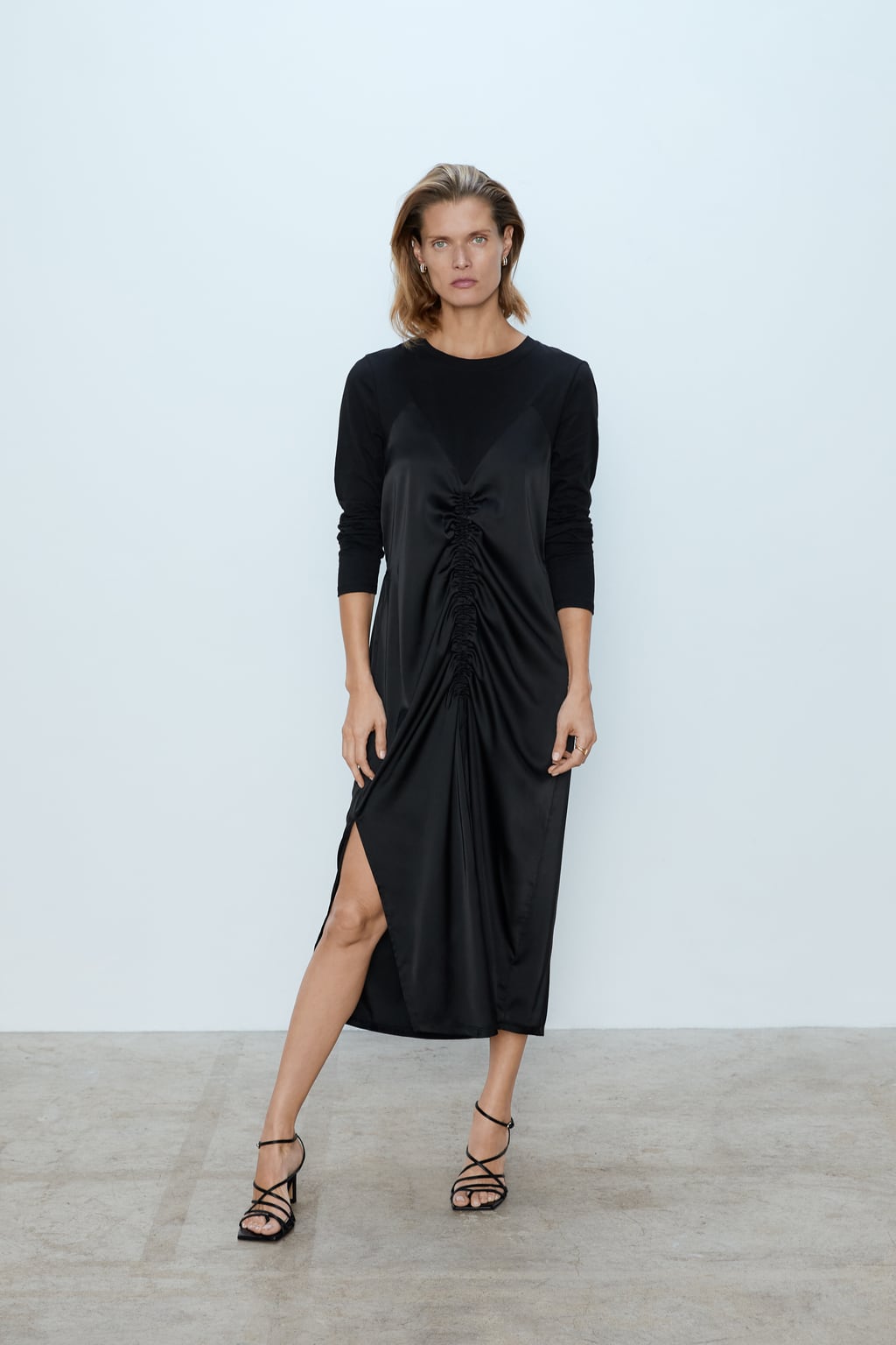 1. Gaun Kombinasi Satin, Zara, Rp699.900,-.