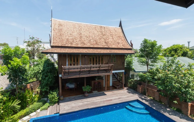 Tidak perlu jauh-jauh ke Phuket atau Koh Samui untuk menikmati bersantai di kolam renang dan naungan pepohonan tropis karena di Bangkok pun kamu bisa menemukan villa tradisional Thailand yang terbuat dari kayu keras dan memiliki arsitektur yang khas. Lokasinya berada di sebuah komplek perumahan mewah sekitar 30 menit dari Bandara Suvarnabhumi dan 30 menit ke pusat kota. Guesthouse ini sendiri memiliki dua lantai dengan kamar tidur king size di lantai atas (termasuk kamar mandi) dan area makan serta dapur terbuka di lantai bawah. Untuk yang malas ke pusat kota, di komplek perumahan ini pun tersedia beberapa toko, restoran, gym, dan taman yang bisa dijangkau dengan jalan kaki.