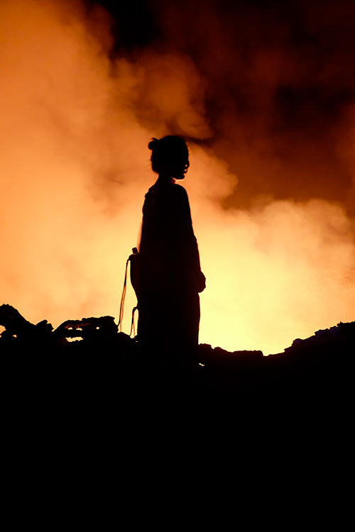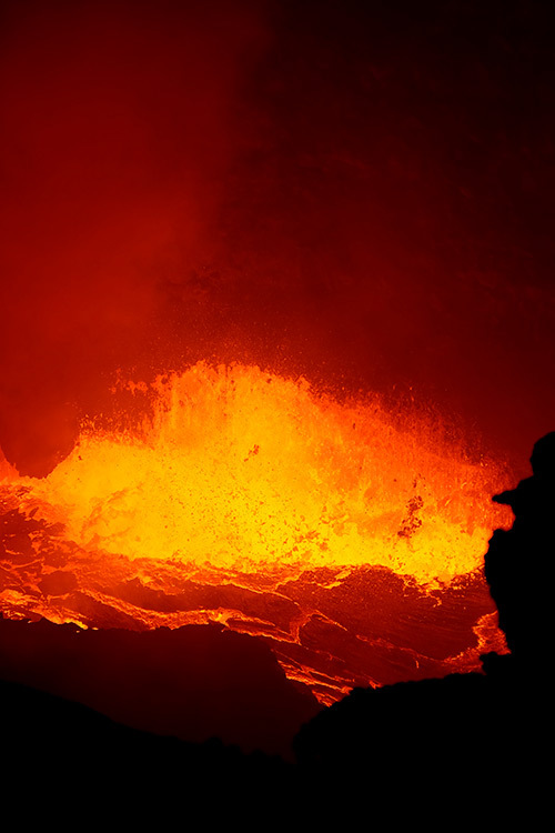 Setelah perjalanan yang melelahkan, kami pun sampai tepat di bibir Erta Ale. Saya menyaksikan langsung lautan magma yang mengamuk – membenturkan diri ke dinding-dinding kolam sambil mengeluarkan pijar yang terang. Merinding, seperti mendengar Tuhan yang sedang marah.