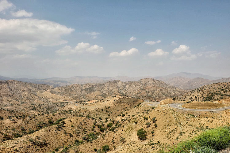 Keluar dari kota Makale, pemandangan lanskap berubah menjadi bukit-bukit tandus yang diselingi oasis pohon palem. Saya pun melewati beberapa dusun kecil dengan rumah-rumah yang dindingnya terbuat dari tanah liat dan beratapkan seng. Terlihat beberapa rumah dicat dengan warna biru dan hijau, sedangkan yang lainnya dibiarkan dengan warna alami tanah liat, cokelat tua.