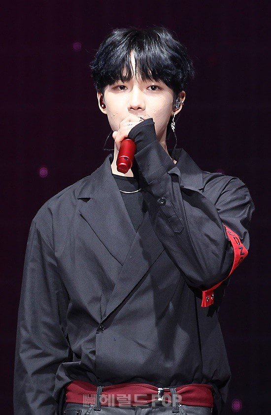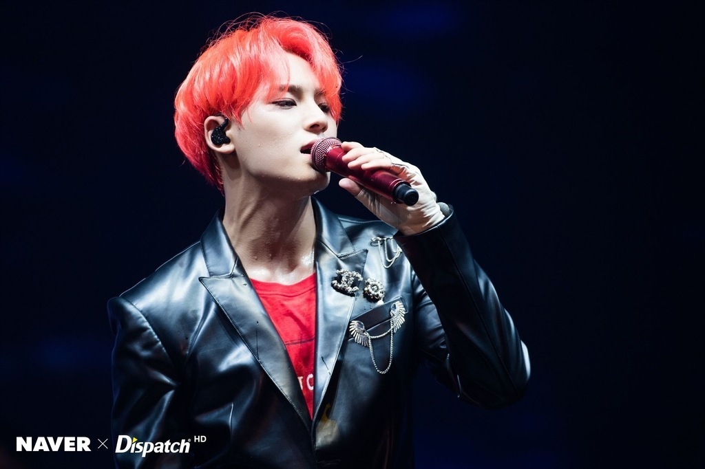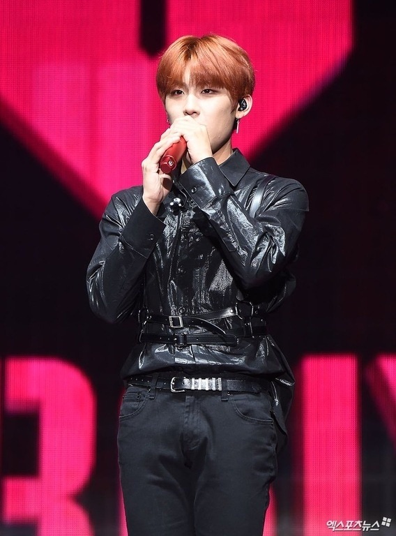 Para personil grup AB6IX juga kompak menggunakan microphone berwarna merah metalik yang seksi untuk perfomance mereka. Hot, hot, hot!