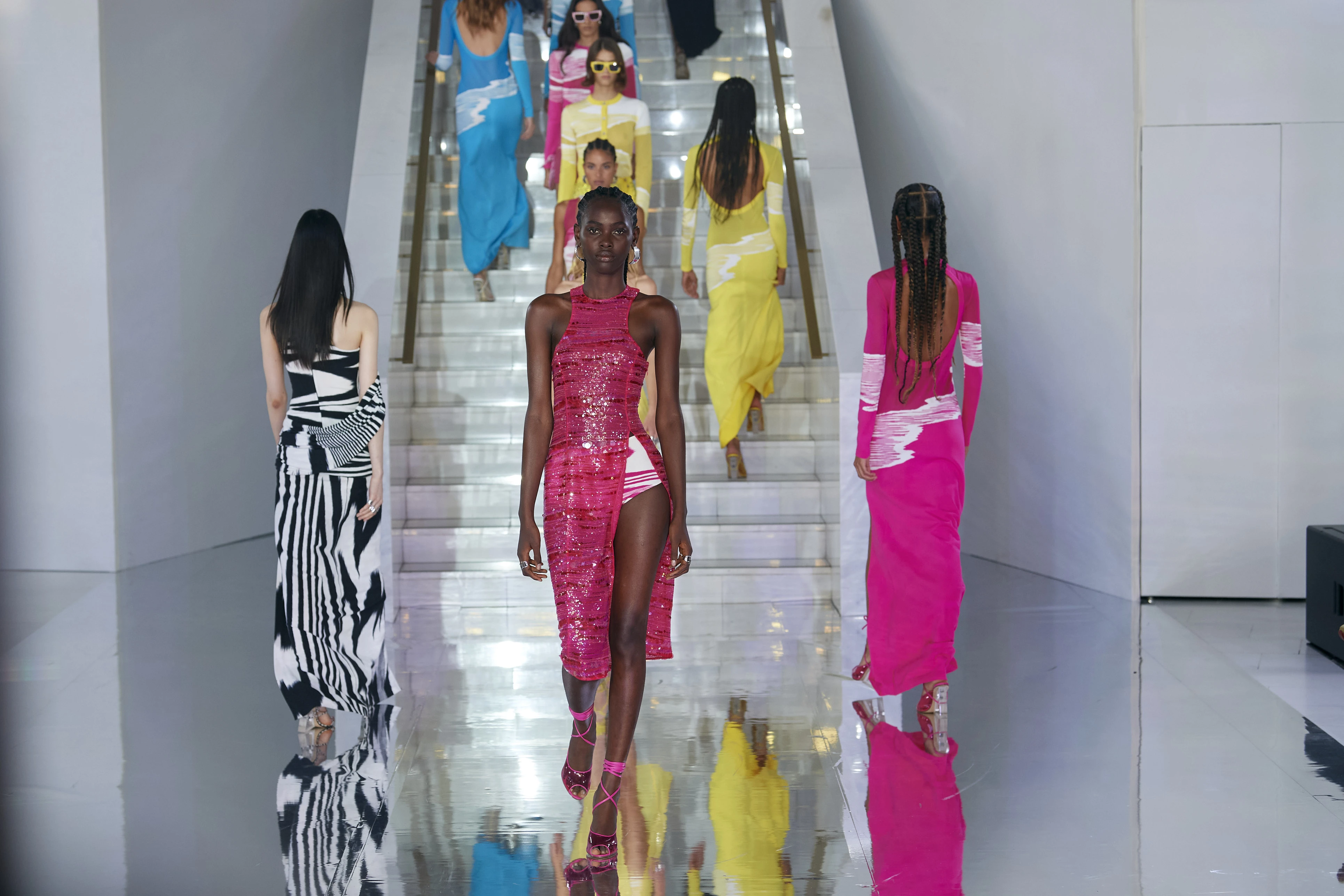Selanjutnya lewat busana, ia hadirkan kombinasi gaya tailoring, sporty, dan gaun seksi yang konseptual dalam pulasan warna vibran dan netral.