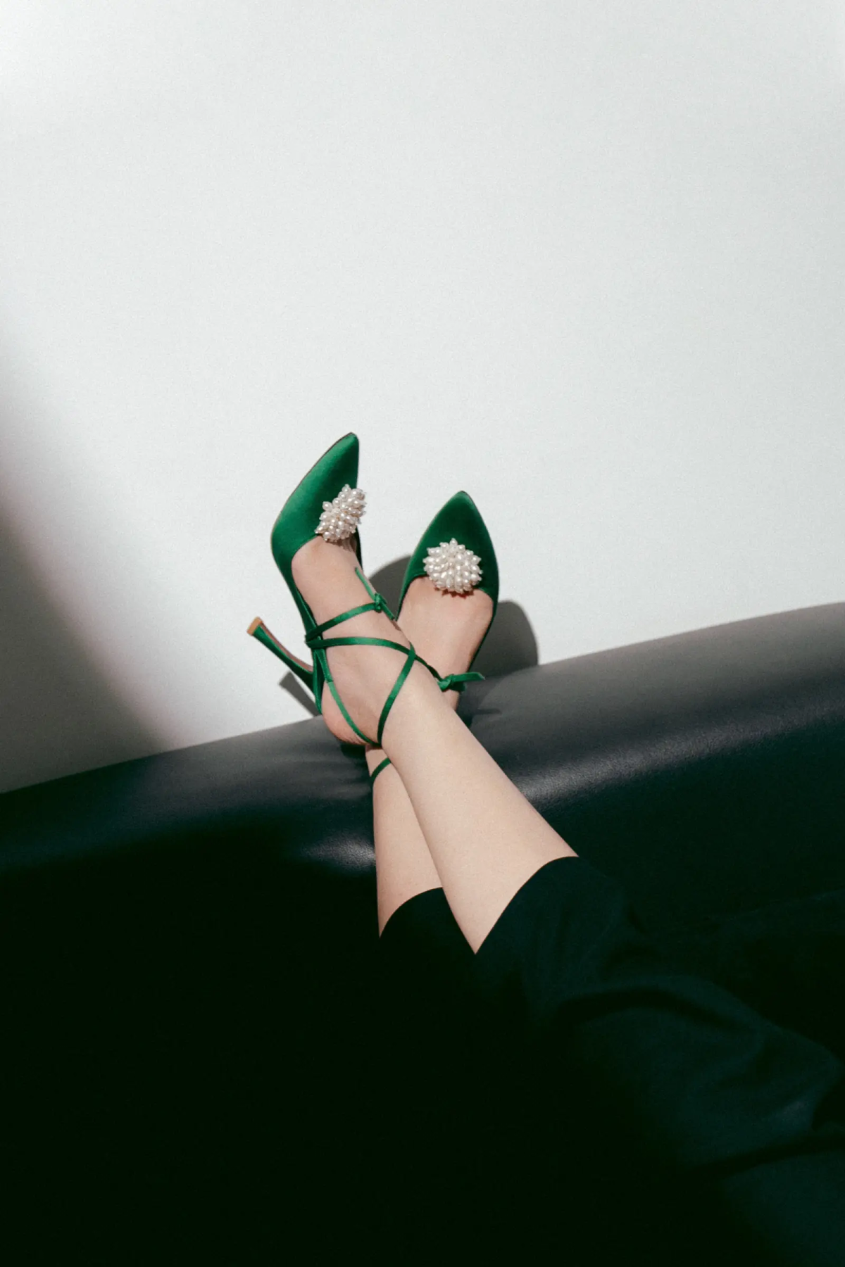 Hijau masih jadi tren warna untuk tahun ini. Tak hanya gaya berbusana, kamu juga bisa memakai warna ini ke dalam pilihan sepatu. Ankle strap hijau berhiaskan embellishment dari Christin Wu ini dapat jadi pilihan sempurna untuk memberi statement penampilan yang effortless glamour. Selain itu warna hijau juga kini dapat dipadukan dengan warna apapun.