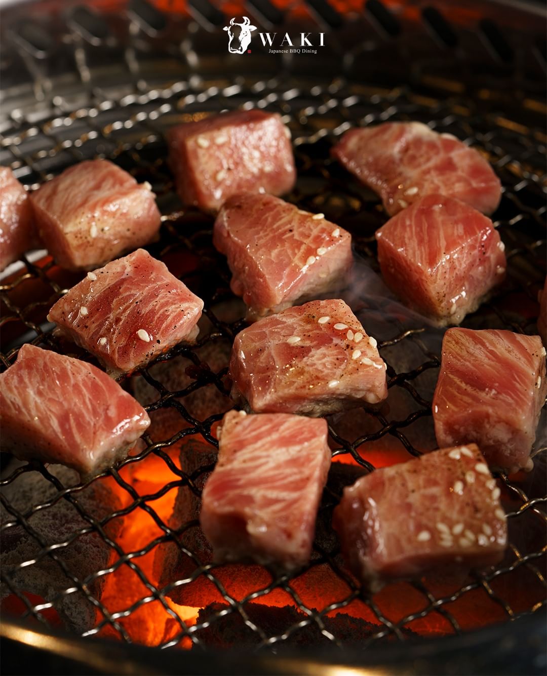 Sama seperti restoran Japanese barbeque pada umumnya, kamu dapat masak dagingmu sendiri, langsung di meja makan. Daging yang disajikan di sini sudah pasti premium. Menu andalan di sini adalah daging wagyu yang sangat juicy. Kamu wajib pesan Tokujyo Kalbi, Saikoro Kalbi, dan Prime Kalbi. Jika kamu datang ke sini bersama keluarga atau teman-teman, kamu bisa pesan platter untuk 3-5 orang seperti Moriawase Platter, WAKI Platter, dan WAKI Supreme Platter. Jangan lupa pesan Garlic Fried Rice untuk teman makan dagingmu, babes!