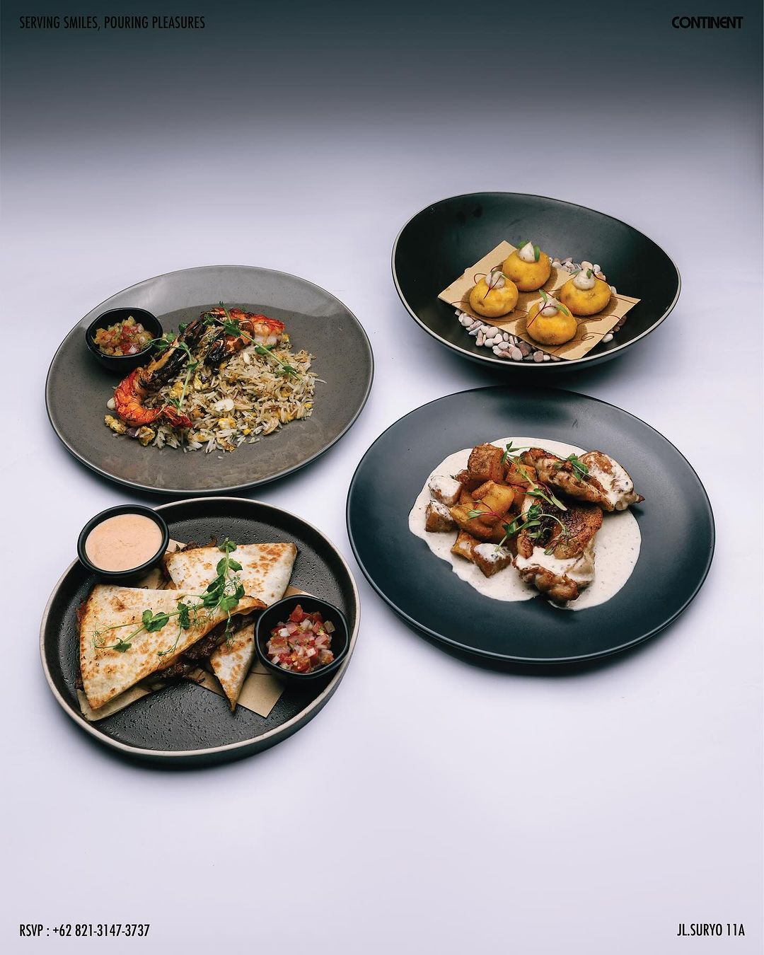 Beragam cocktail tersedia di Continent, mulai dari classic cocktail sampai signature cocktail. Untuk classic cocktail, kamu bisa coba cocktail favorit Cosmo di sini yakni, Negroni, Cosmopolitan, dan Sex On The Beach. Sedangkan signature cocktail, tersedia beberapa varian yang beragam. Jika kamu suka minuman manis dan creamy, kamu wajib coba Chocolate Cadillac dan Cup O’ Masala. Need something fresh? Kamu bisa pesan Driving to Iceland dan Bossa Nova.