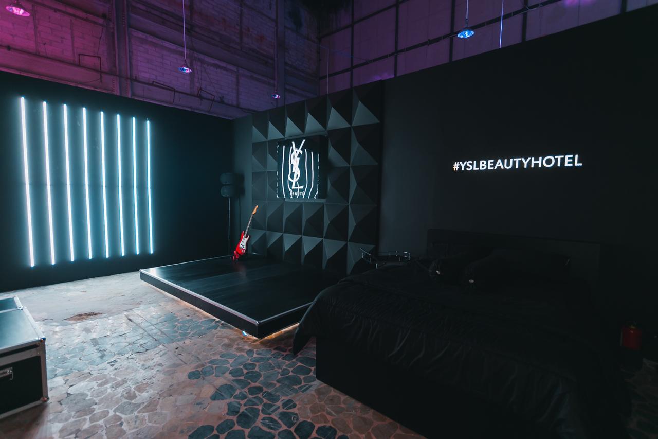 Menuju ruangan selanjutnya, Cosmo mendapati kamar hotel yang diberi nama Live Showcas Room. Ruangan kamar yang bernuansa hitam bertemakan rock ini, dilengkapi dengan tempat tidur, panggung mini dan alat musik seperti gitar, living room, dan tentu saja sejumlah produk kecantikan YSL.