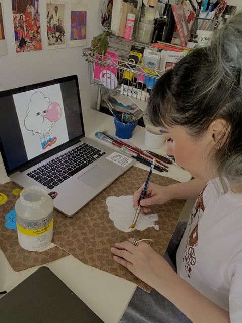 “Sejauh yang saya ingat, saya selalu suka menggambar awan. Rasanya seperti sebuah kebebasan yang murni untuk menggambar bentuk dan warna mereka, terasa sangat menyenangkan. Jadi seiring berjalannya waktu, saya membuat karakter berbasis awan yang diberi nama Sunday. Karakternya ceria, santai, supel, dan ramah seperti hari Sunday (Minggu), ” jelas Amelz. Motif yang dipilih untuk limited collection Art of Signature ini adalah Sunday yang menikmati hari sambil meniup permen karet dan membentuk balon. Ia berharap di waktu yang cukup sulit ini, melihat karakter Sunday yang lucu dan menghiasi tas dapat mengingatkan kita akan langit cerah dan hari yang lebih baik.
