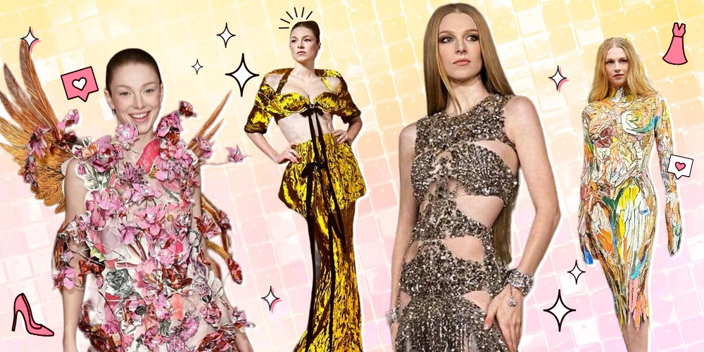 Hunter Schafer mengenakan gaun Alexander McQueen