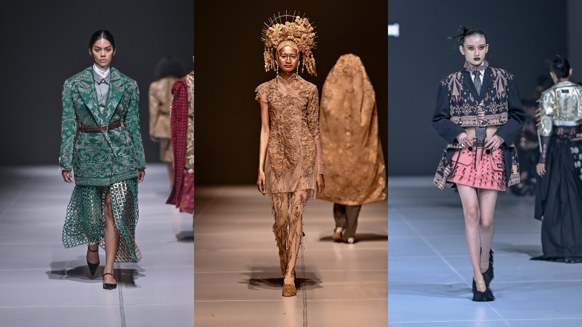 Kain tradisional Nusantara menjadi salah satu primadona di panggung Jakarta Fashion Week kali ini. Tenun, songket, dan batik ditampilkan melalui konstruksi kontemporer seperti outerwear berpotongan longgar, gaun bersiluet asimetris, serta kombinasi bahan ringan. Warna-warna tanah, emas, dan merah marun muncul dominan, menghadirkan ide segar dalam penataan motif klasik agar sesuai dengan kebutuhan ready-to-wear.