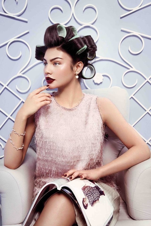 Cosmo menggunakan warna pearl pada kelopak dan garis mata bawah untuk menemani lipstick glossy black sebagai statement. Ragu untuk membeli lipstick warna hitam? Gunakan eyeliner hitam yang dilapisi clear gloss!